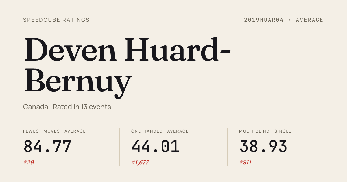 - Dec 21, 20253x3x3 Fewest Moves · FinalIHopeItsSolvedEdmonton2025 · 1st22.67