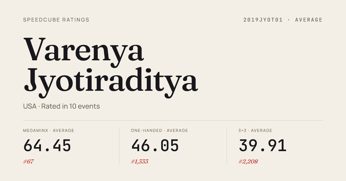 - Mar 1, 20263x3x3 Cube · Round 2BerkeleyFavorites2026 · 17th9.09