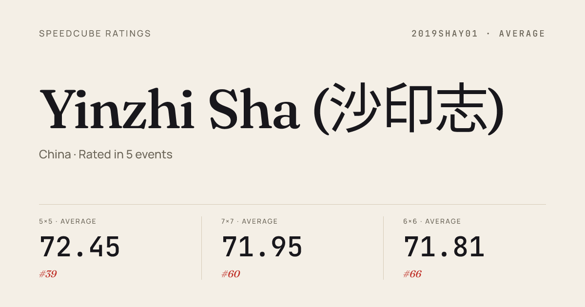 - Apr 12, 20265x5x5 Cube · FinalXuzhouZenith2026 · 2nd46.24