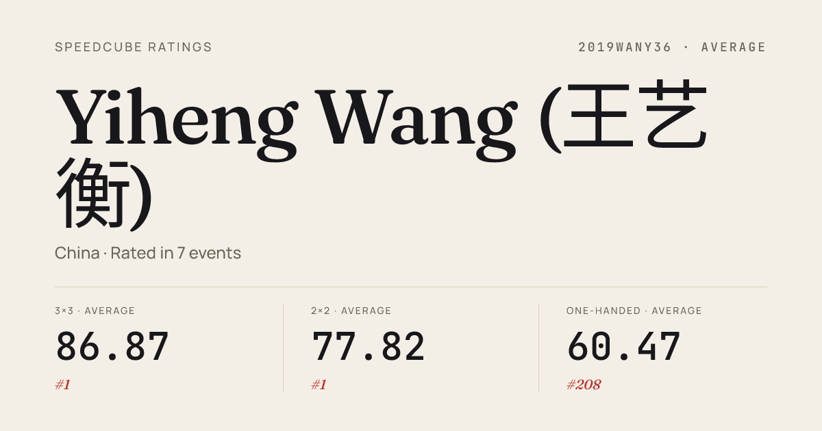 - Apr 12, 20263x3x3 Cube · Semi-FinalXuzhouZenith2026 · 1st4.01