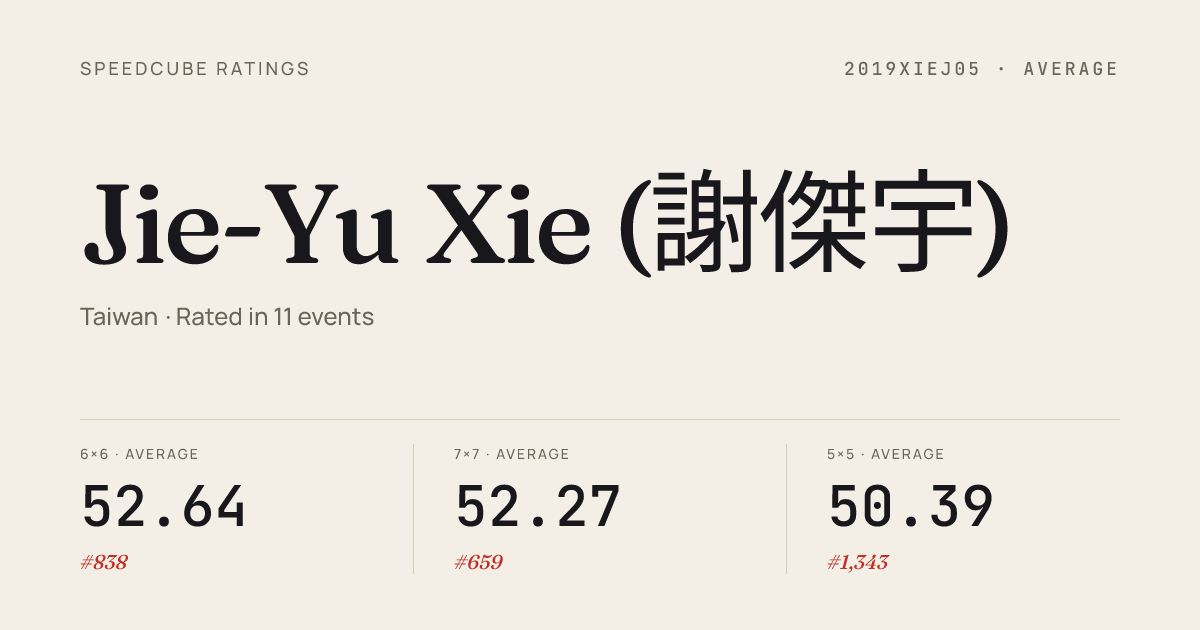 - Dec 21, 20253x3x3 Cube · Round 1TaiwanChampionship2025 · 91st11.27