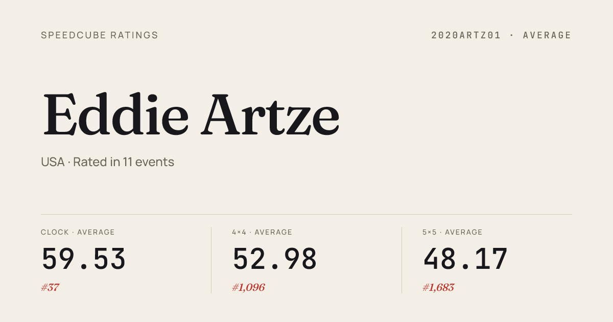 - Jan 18, 20262x2x2 Cube · Round 1GeorgiaChampionship2026 · 11th2.19