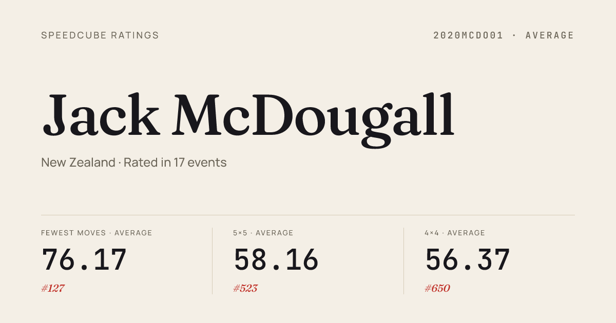 - Mar 29, 20263x3x3 Fewest Moves · FinalNZCubingHeptathlon2026 · 2nd23