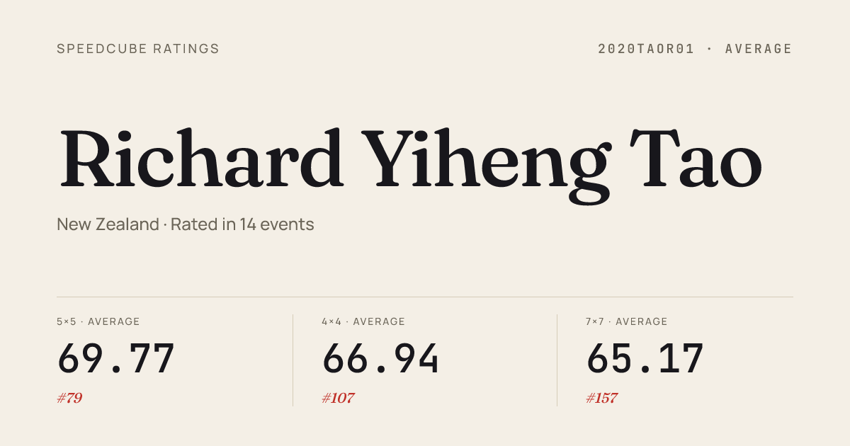 - Mar 1, 20263x3x3 Cube · FinalNZNorthIslandChampionship2026 · 2nd5.45