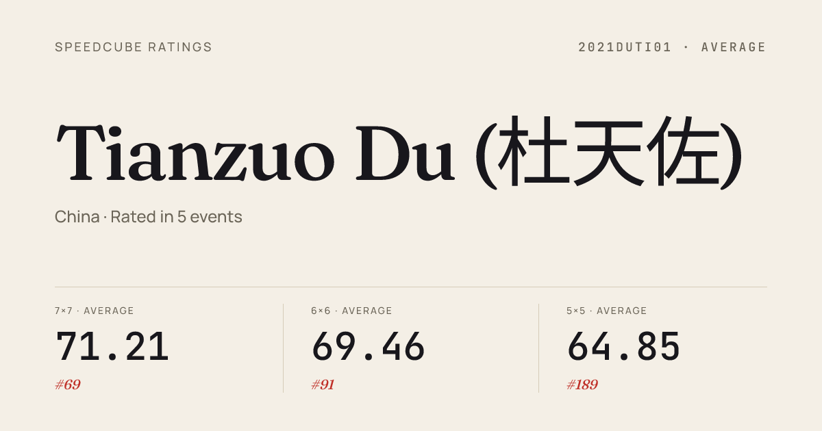 - Apr 12, 20265x5x5 Cube · FinalXuzhouZenith2026 · 6th53.99