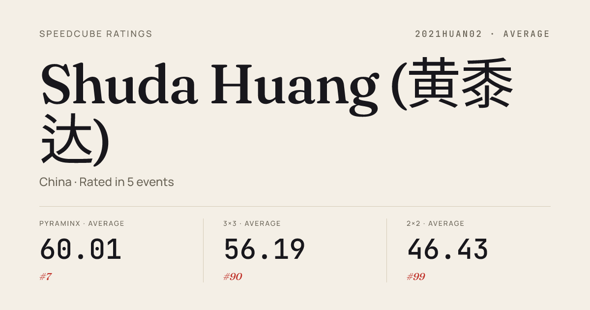 - Mar 29, 20263x3x3 Cube · Round 2YanchengSpringOpen2026 · 13th6.48