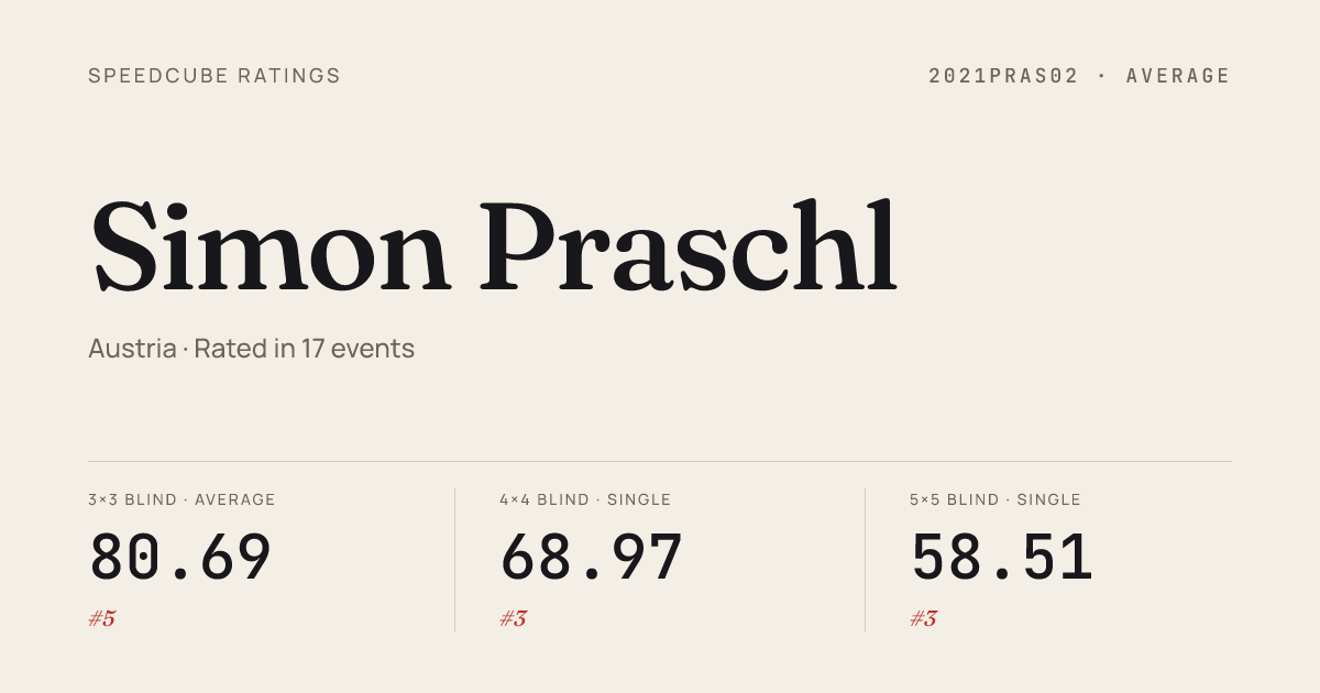 - Mar 8, 20262x2x2 Cube · Round 2CubinginRuzinovMarch2026 · 17th3.90