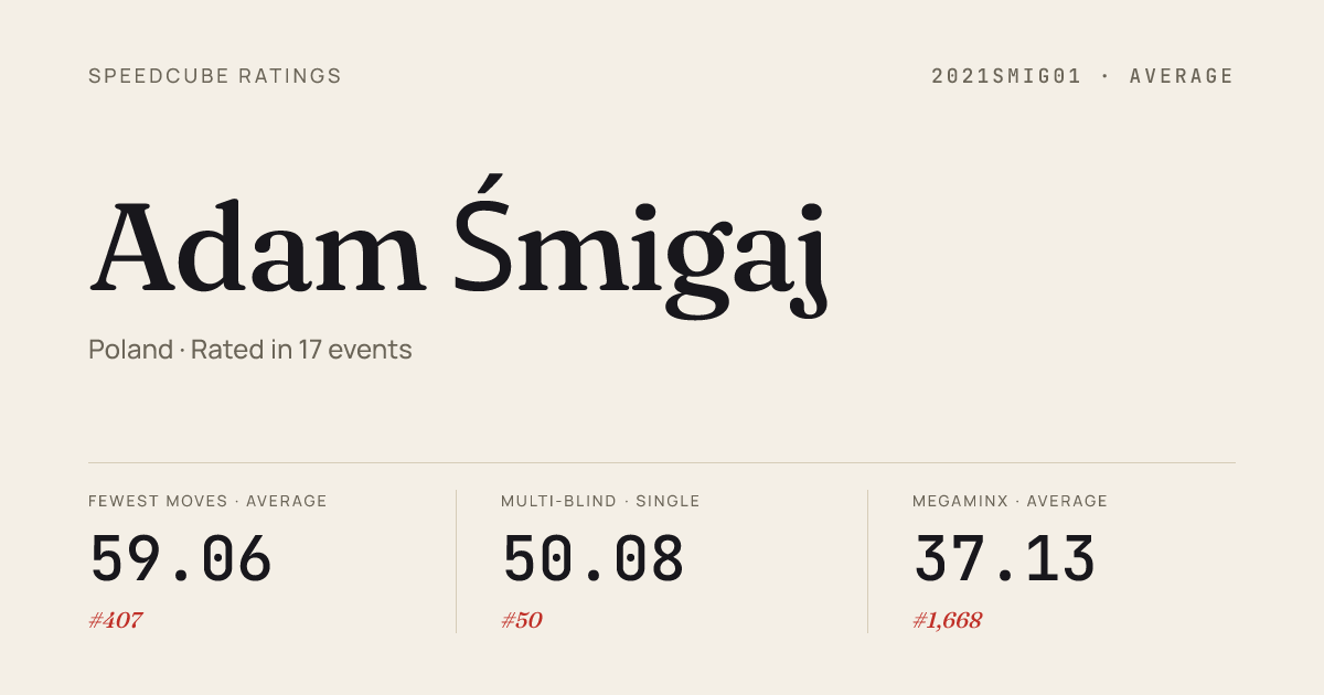 - Mar 22, 20263x3x3 Cube · Round 2GLSGdanskII2026 · 34th12.27
