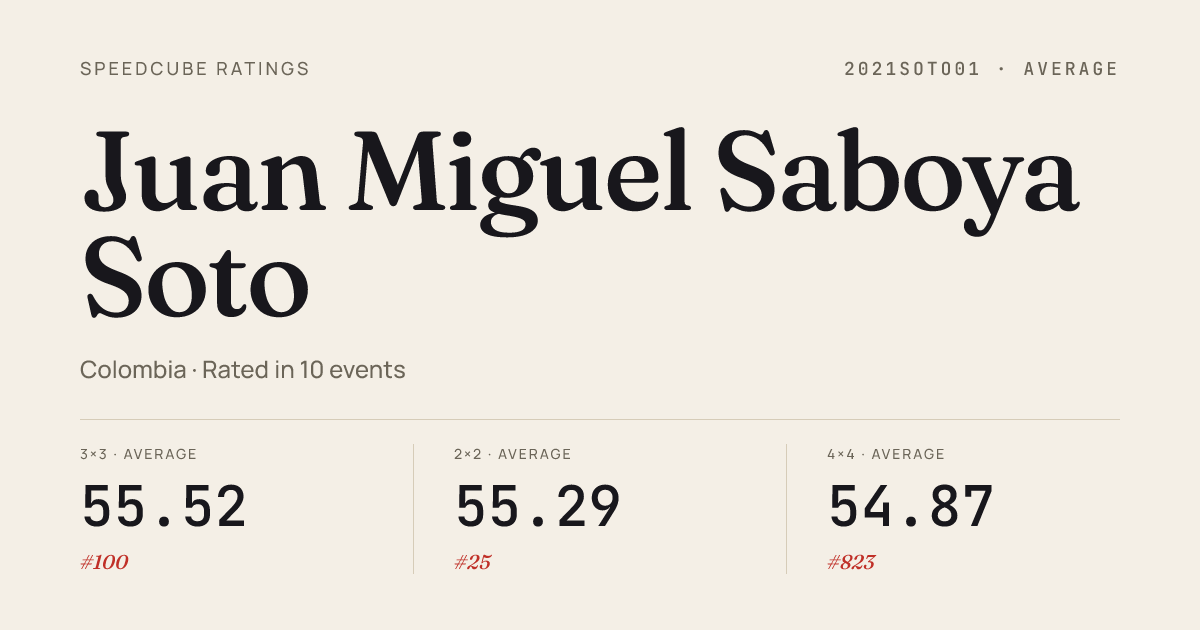 - Apr 4, 20262x2x2 Cube · Round 175PorCientoBogota2026 · 1st1.91