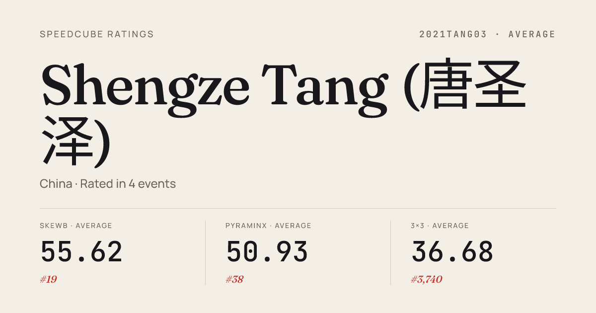- Apr 5, 20263x3x3 Cube · Round 1XianCherryBlossom2026 · 61st9.98