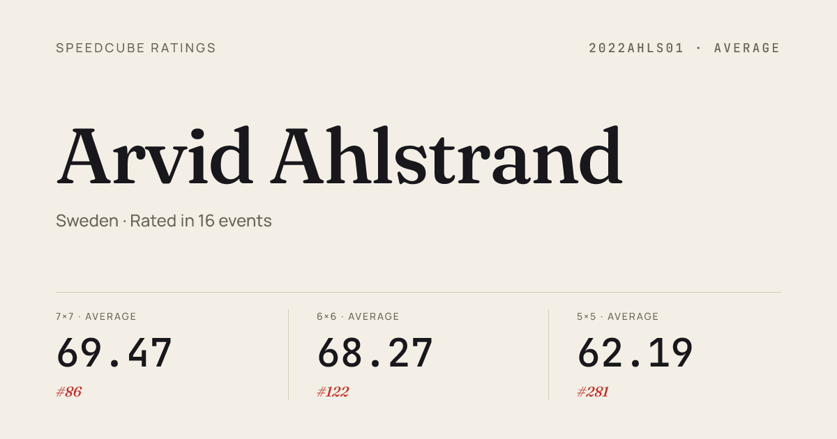 - Feb 14, 20263x3x3 Cube · FinalKublordagJonkopingX2026 · 7th8.59