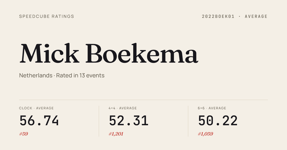 - Apr 19, 20262x2x2 Cube · FinalBredaOpen2026 · 5th2.17