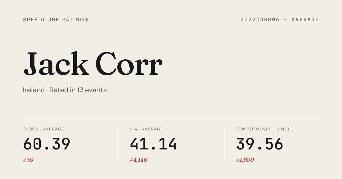 - Apr 12, 20264x4x4 Cube · Round 1DontGoSlowinWicklow2026 · 11th47.08