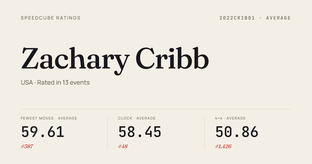 - Apr 4, 20263x3x3 Cube · Round 1RacineRendezvous2026 · 3rd7.25