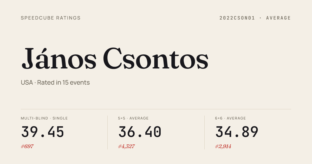 - Jun 14, 20256x6x6 Cube · Round 2NapervilleMiniII2025 · 23rd2:59.35
