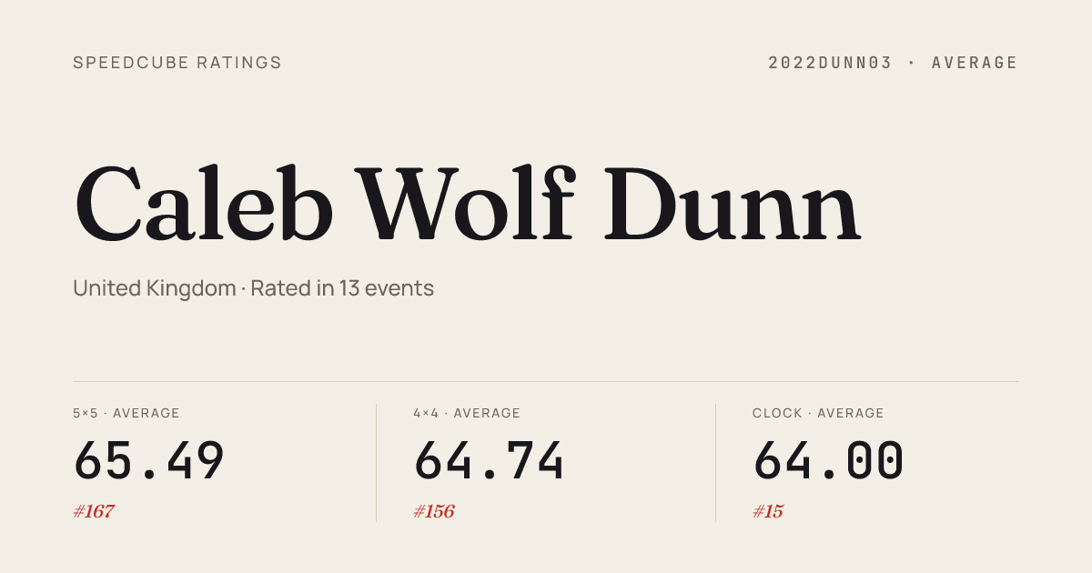 - Apr 19, 20263x3x3 Cube · Round 1LiverpoolSpring2026 · 1st6.47