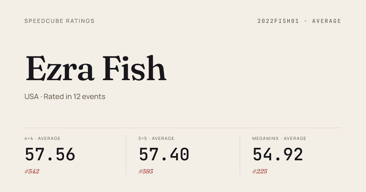 - Apr 18, 20263x3x3 Cube · Round 1EugeneSpring2026 · 4th8.16