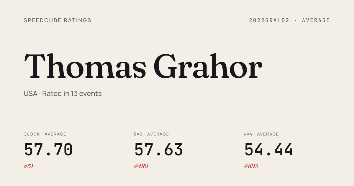 - Apr 12, 20263x3x3 Cube · Round 2OberliNxN2026 · 11th10.91