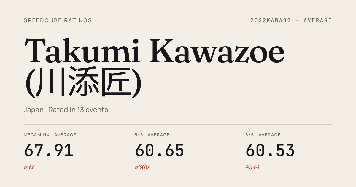 Takumi Kawazoe (川添匠) · SCRRatings by event