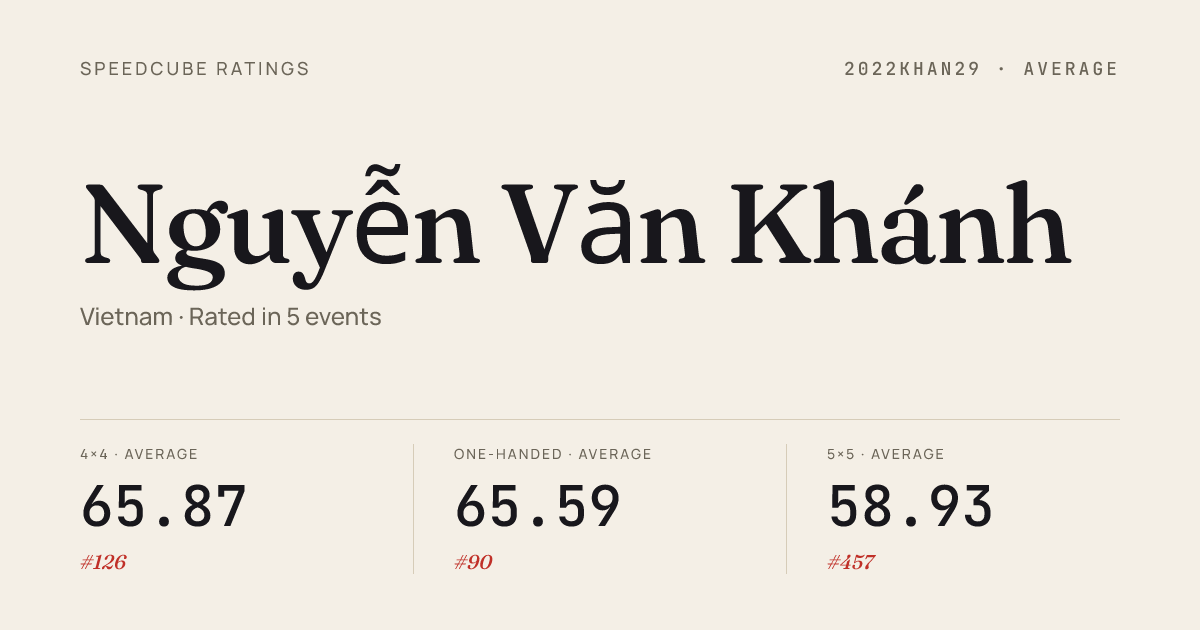 - Mar 22, 20263x3x3 Cube · FinalMYHMHaNxNoi2026 · 3rd6.49