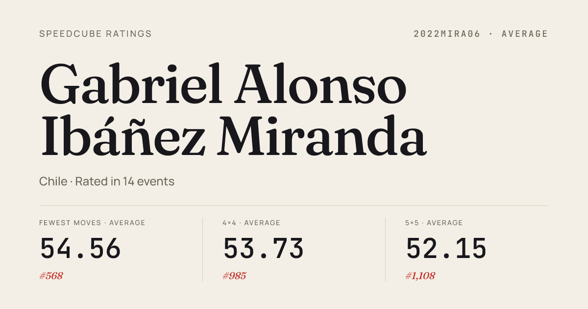 - Mar 14, 20263x3x3 Cube · Round 2SausalitoNxNOpen2026 · 5th8.31