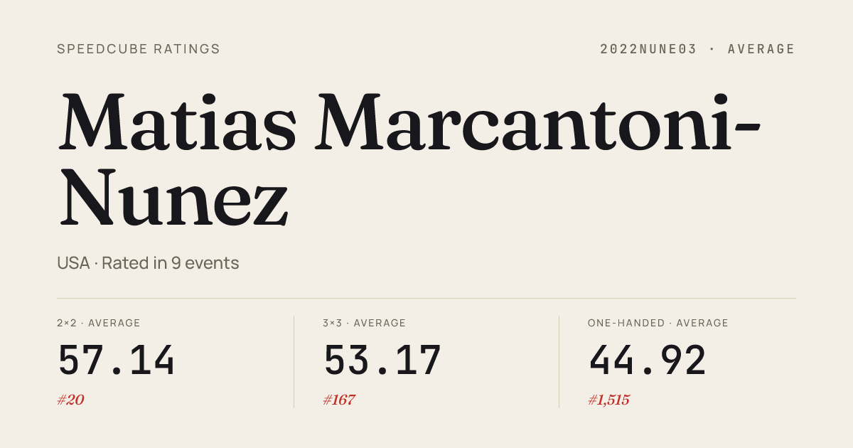 - Feb 14, 20263x3x3 Cube · Round 2VanderbiltWinter2026 · 3rd7.41