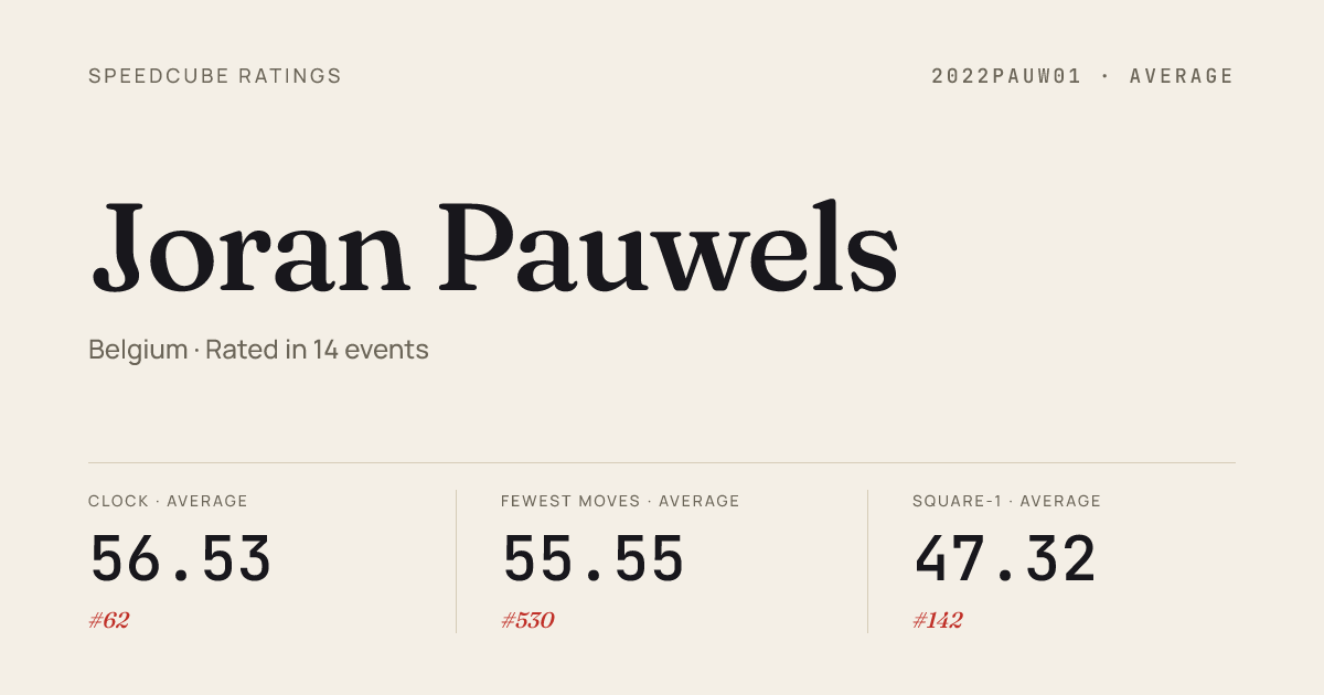 - Mar 15, 20262x2x2 Cube · FinalNoRushHasselt2026 · 3rd2.15