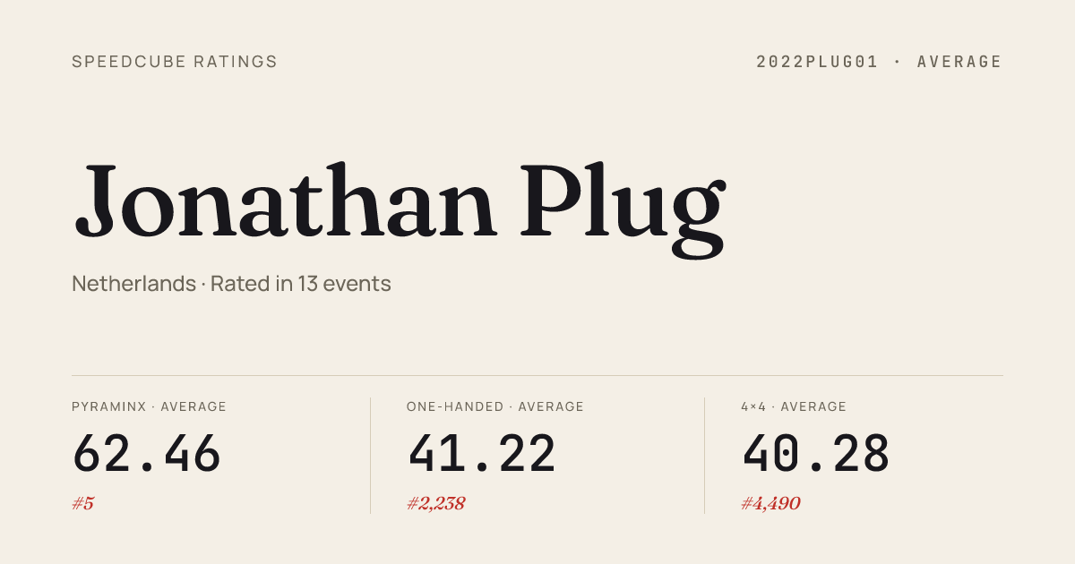 - Apr 19, 2026Pyraminx · FinalBredaOpen2026 · 1st1.69