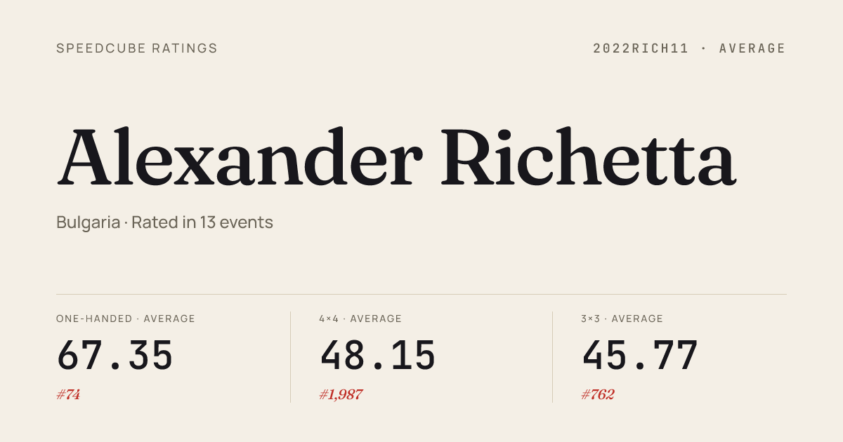 - Mar 29, 20263x3x3 Cube · Semi-FinalHayangeOpen2026 · 4th8.18