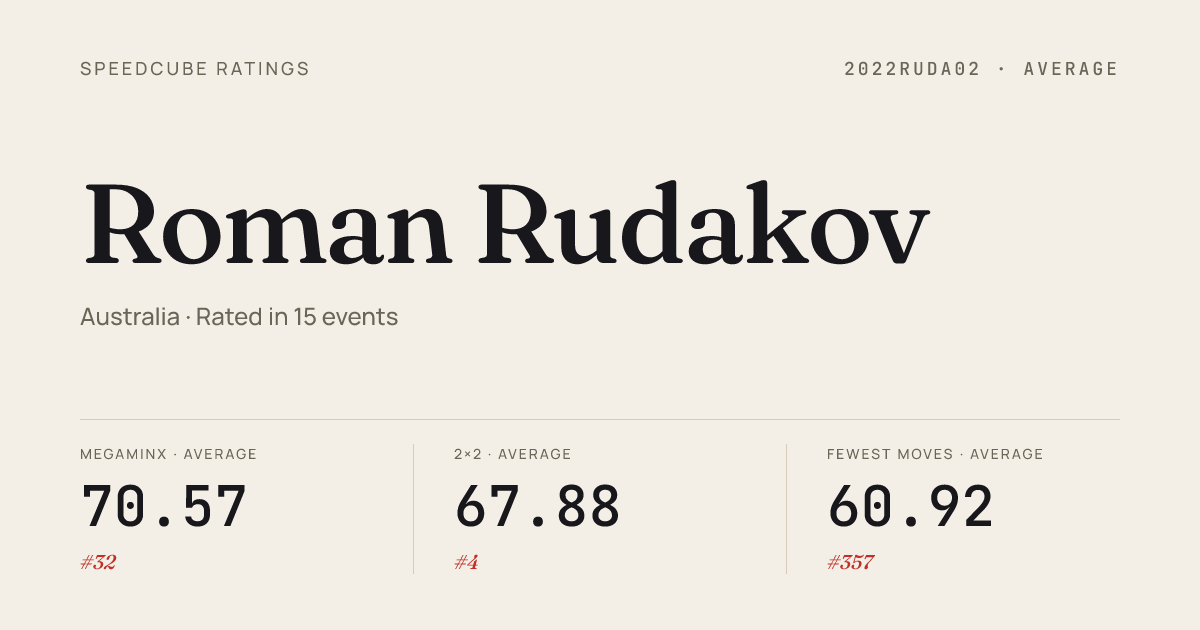- Mar 7, 20262x2x2 Cube · FinalNEMelbourneMarchSaturday2026 · 1st1.11