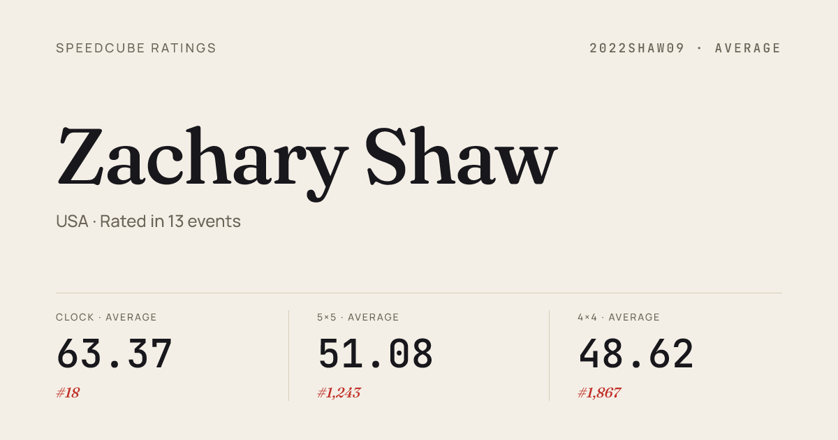 - Mar 28, 20263x3x3 Cube · Round 1WilliamsburgOpenSpring2026 · 12th10.18