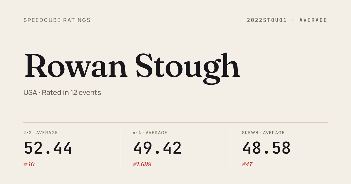 - Apr 11, 20263x3x3 Cube · Round 1CubeAgainstCancerRoswell2026 · 5th8.42