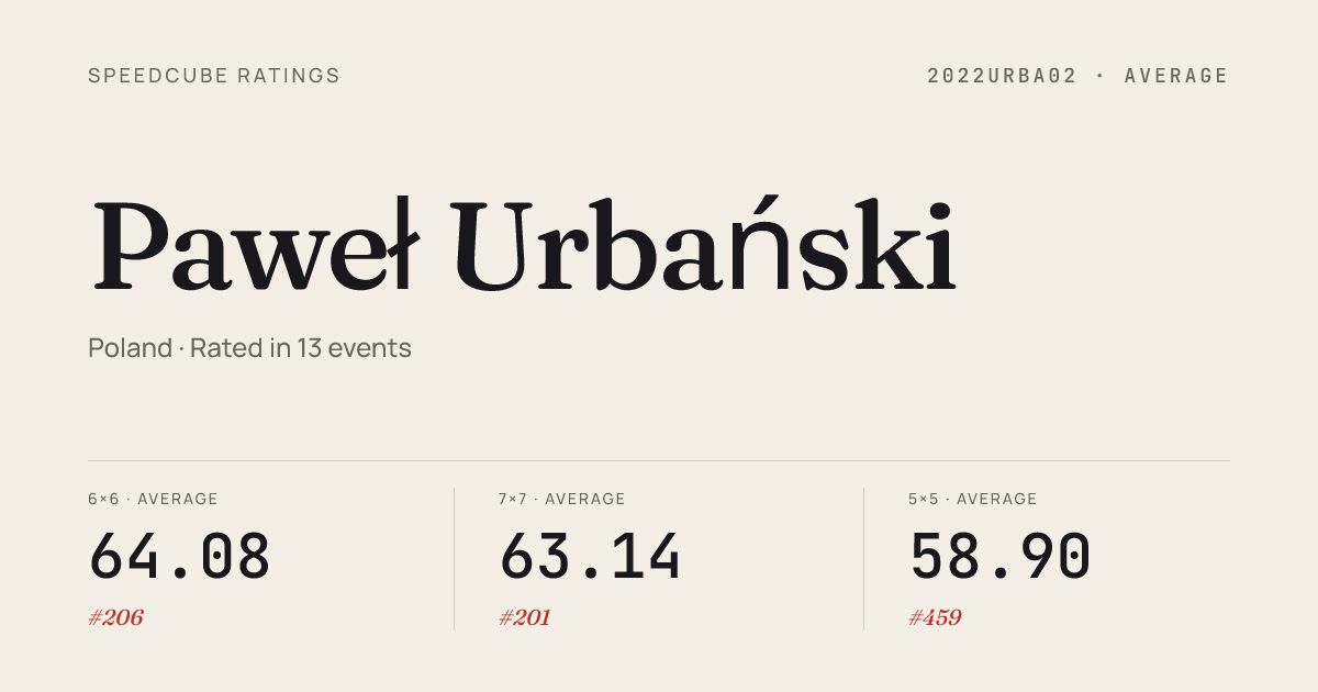 - Apr 19, 20263x3x3 Cube · FinalCubeFactoryLeagueJezow2026 · 12th8.85