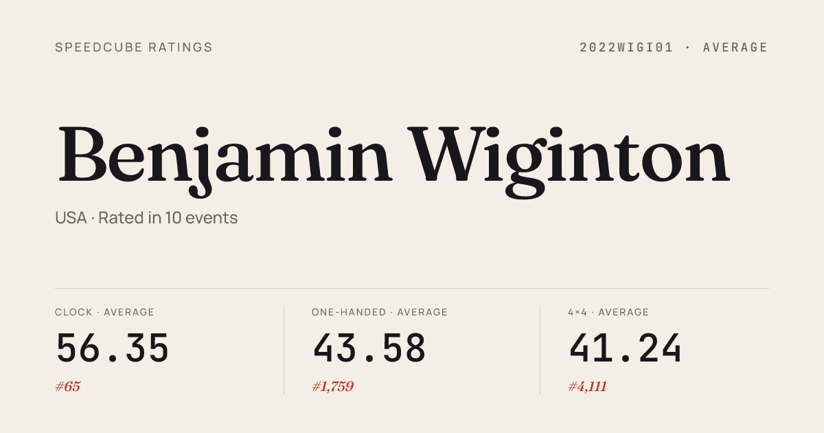 - Feb 21, 20263x3x3 Cube · Round 1PBsinPalisadesOpen2026 · 22nd9.42
