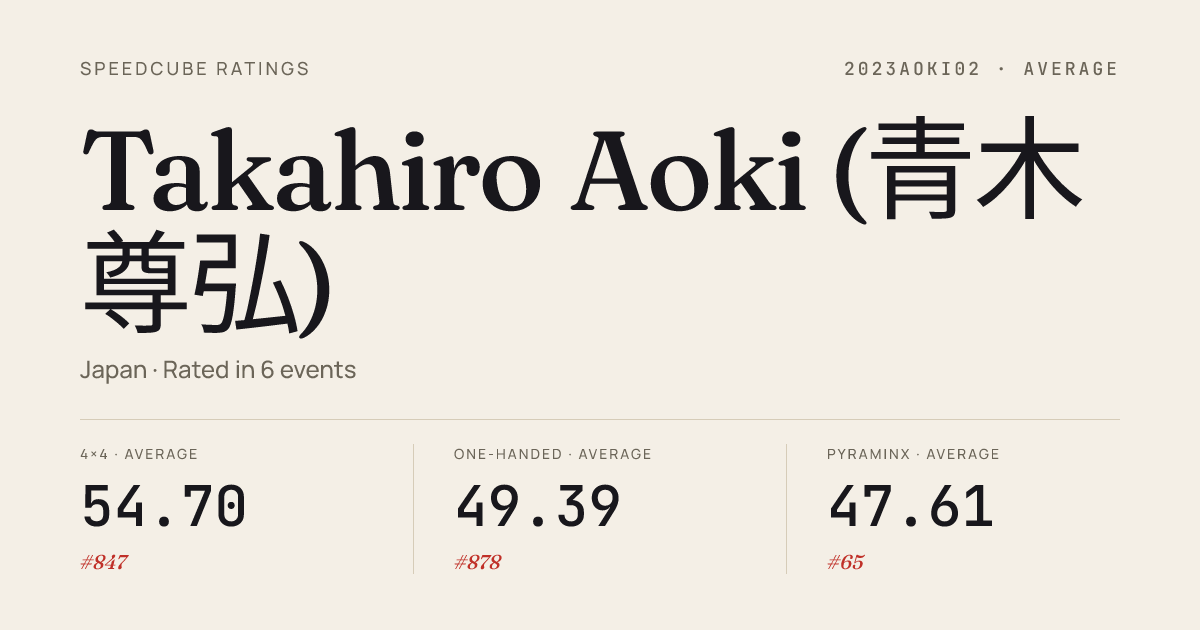 Takahiro Aoki (青木尊弘) · SCRRatings by event