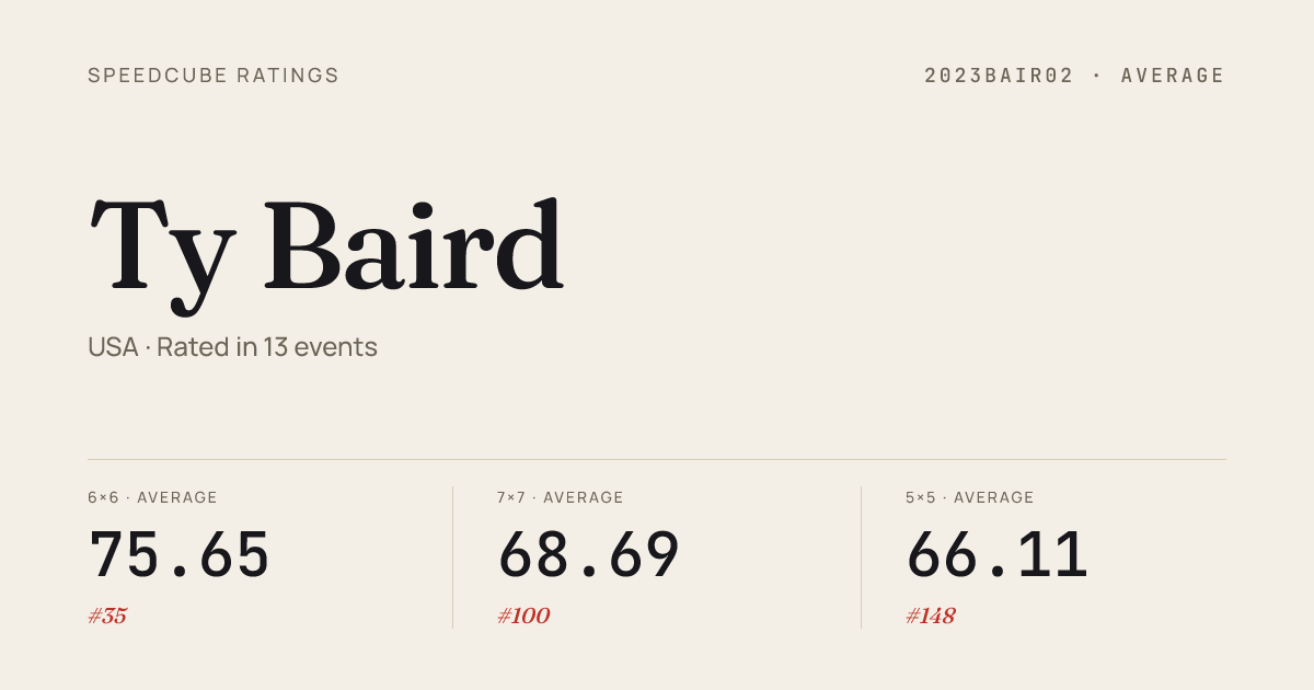 - Feb 21, 20263x3x3 Cube · FinalCubingwithDinosaursLehi2026 · 4th9.25