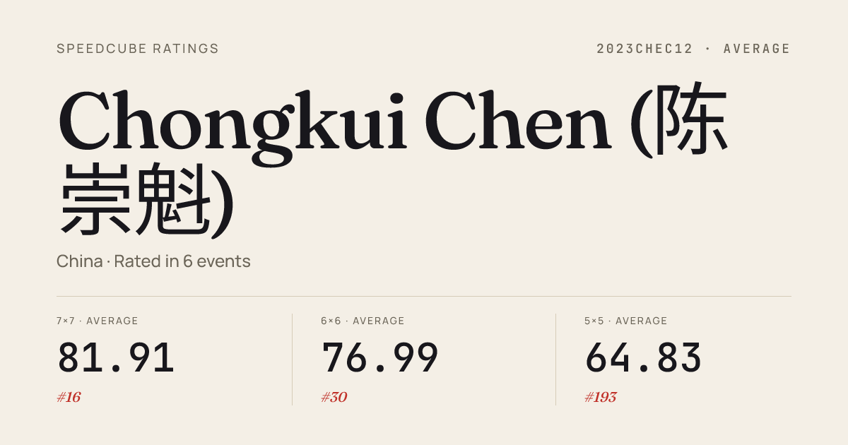 - Apr 5, 20263x3x3 Cube · Semi-FinalXianCherryBlossom2026 · 34th8.61