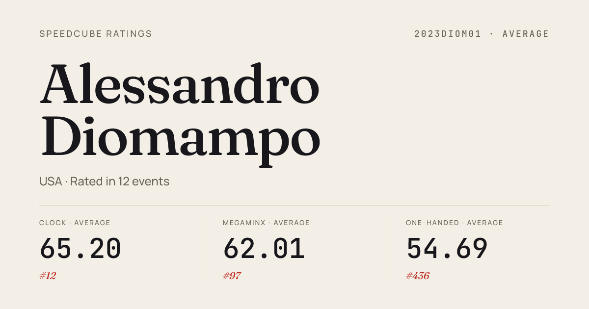 - Mar 13, 20263x3x3 Cube · Round 2BerkeleyMarchWeekday2026 · 6th8.77