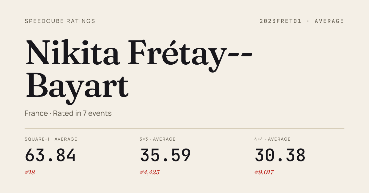 - Feb 8, 20263x3x3 Cube · Round 1CernaylesReimsOpen2026 · 12th10.67