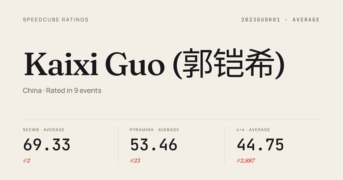 Kaixi Guo (郭铠希) · SCRRatings by event
