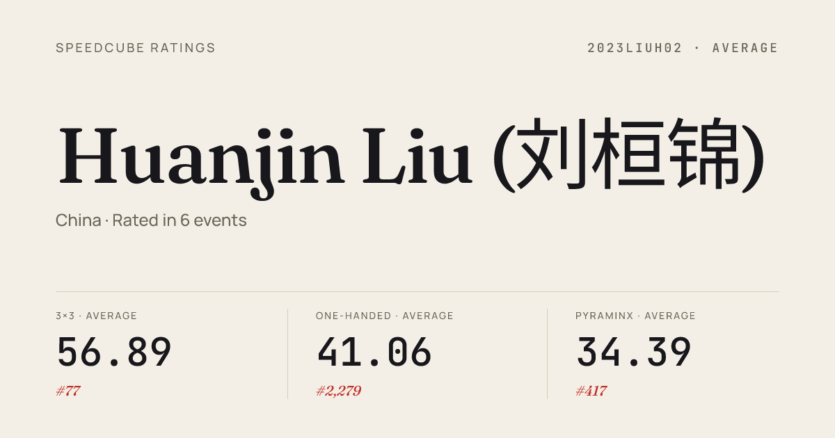 - Feb 8, 20263x3x3 Cube · Round 2GuangdongRevivalRival2026 · 14th6.15