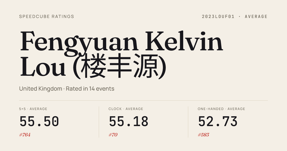 - Nov 9, 20253x3x3 One-Handed · Combined FinalStevenage10thAnniversary2025 · 5th14.04