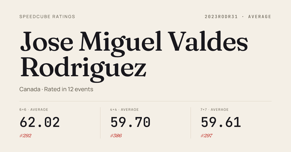 - Mar 15, 20263x3x3 Cube · Round 1VancouverMiniAfternoon2026 · 4th8.71