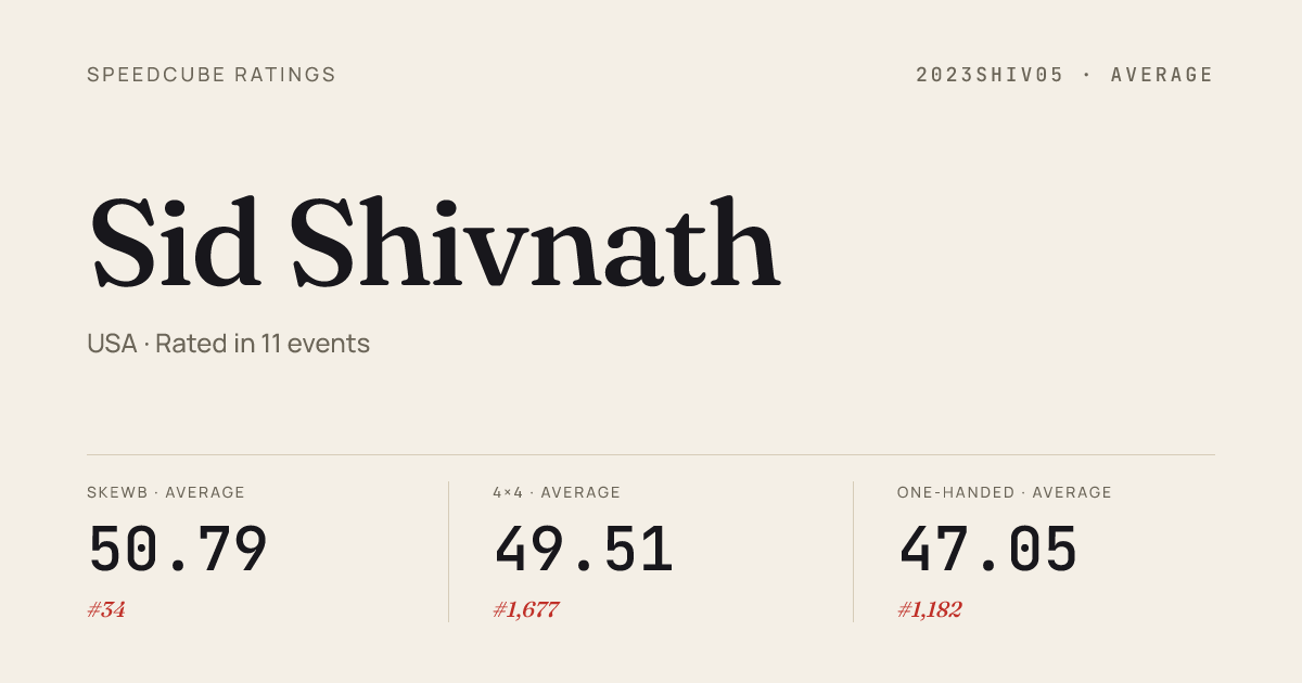 - Apr 5, 20263x3x3 Cube · FinalMcBajaII2026 · 2nd8.17