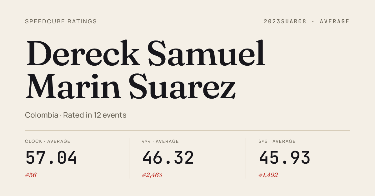 - Apr 11, 20263x3x3 Cube · Round 2NovaPlazaFacatativaV2026 · 2nd10.11