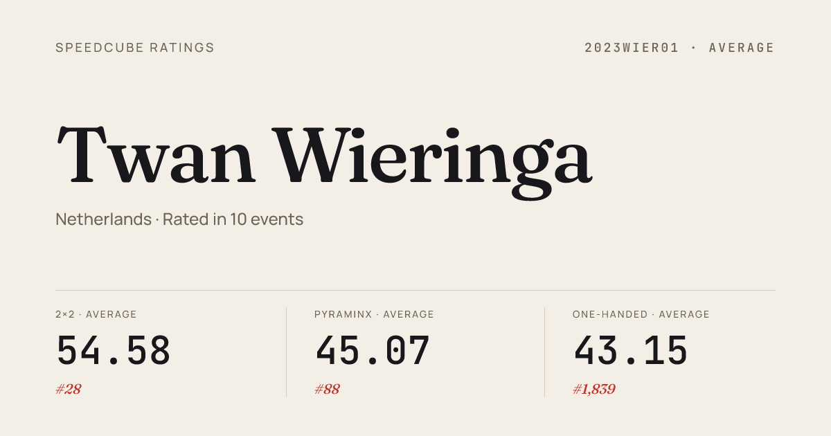 - Apr 19, 20262x2x2 Cube · FinalBredaOpen2026 · 1st1.17