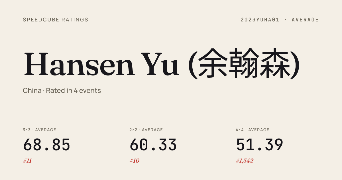 - Apr 5, 20263x3x3 Cube · Semi-FinalXianCherryBlossom2026 · 7th5.85