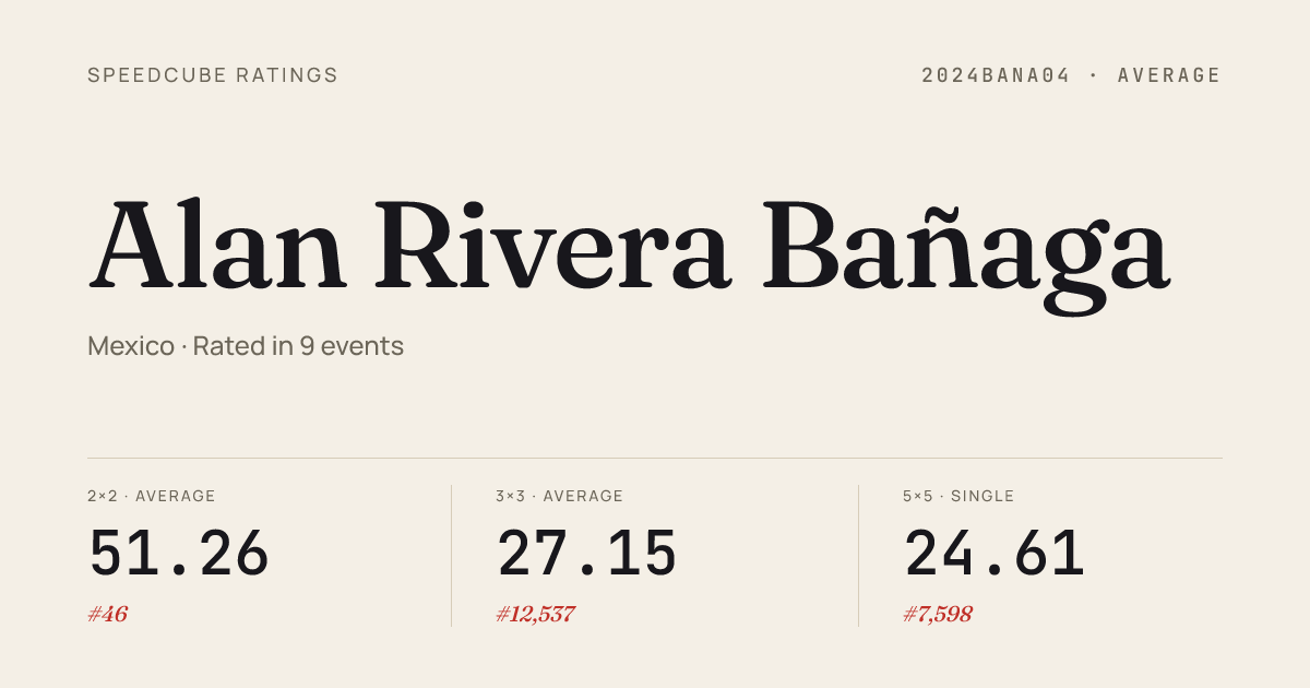 - Apr 5, 20263x3x3 Cube · Round 1McBajaII2026 · 11th14.25