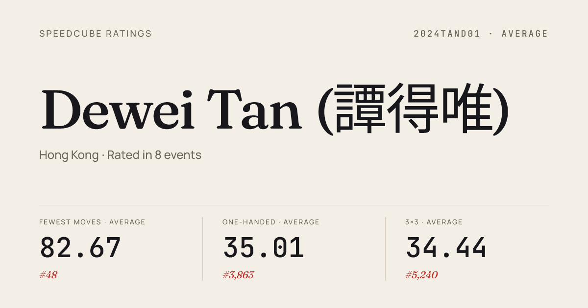 - Mar 15, 20263x3x3 Fewest Moves · Round 2SCUIIIFMCTripleScoop2026 · 2nd24.33