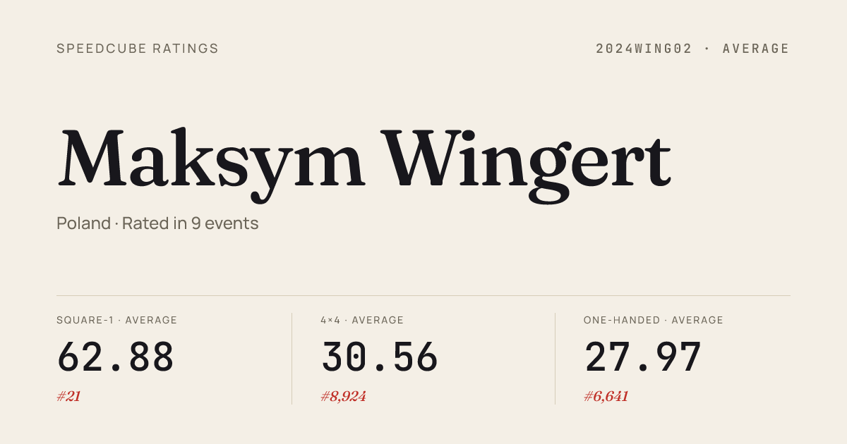 - Mar 29, 20263x3x3 Cube · FinalGorzowCubingDays2026 · 31st13.65